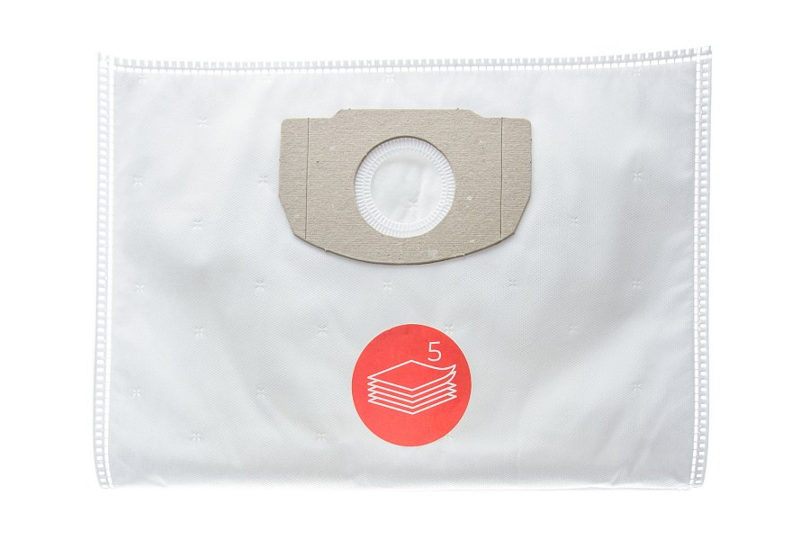Pytlíky do vysavače KÄRCHER WD 5.300 se mohou pochlubit hned několika vychytávkami. Hlavní předností je kvalitní netkaná textilie, která má pět vrstev a antibakteriální vlastnosti. Je pružná, prodyšná a odolná proti prasknutí. Díky své pružnosti se natvaruje přesně podle prostoru ve vysavači a dokáže pojmout až o 15 % více odpadu než obyčejný papírový sáček. A co vysátí střepů nebo kamínků? Či dokonce trocha vody? Pro papírový pytlík je to většinou problém. Sáčky VACS však zvládnou i to. Netkaná textilie se totiž nerozmočí a neroztrhne jako papír, ale stále drží pohromadě. Nevysávejte pouze materiál jako je brusný prach a popel. Ucpávají póry sáčku, který pak pod náporem tlaku praskne. Spoje sáčku nejsou lepené, ale přitavené speciální technologií.